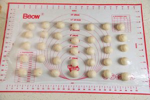 将面团取出揉出里面的气泡,然后分成35份,盖保鲜膜松弛15分钟,