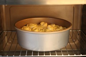 依次排列整齐,放温暖处发酵至两倍大(我是放在烤箱的,调成发酵即可),