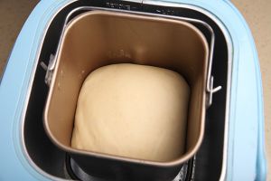和面完成,接着在面包机里装换到发酵程序,发酵至两倍大,