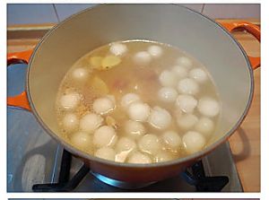 加入煮过的汤中,再次煮至半熟;