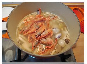 最后加入北极虾再次煮沸,;