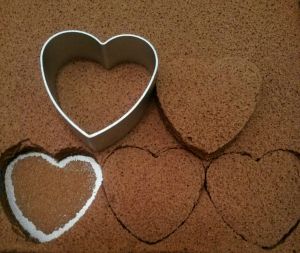 蛋糕糊装入裱花袋,挤一些在蛋糕模底部,心形蛋糕片整齐排列在蛋糕模中间