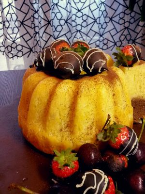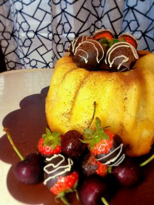 草莓和樱桃装饰好磅蛋糕,美味漂亮的巧克力戚风磅蛋糕就完工了!