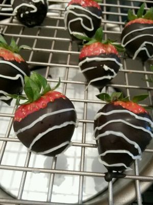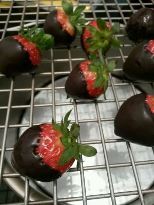 草莓洗干净,吸干水份,巧克力隔水融化,草莓在巧克力液转一圈后晾网上晾干