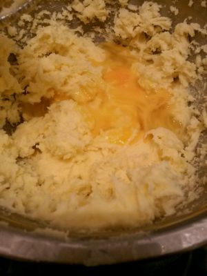 分三四次加入鸡蛋液,每次都需打发至混合均匀后再加下一次