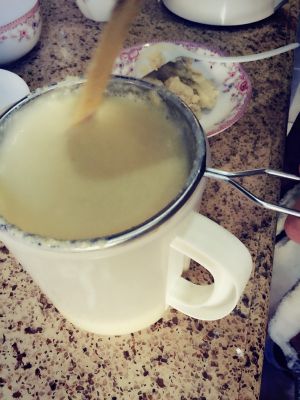 好了,过筛后的豆浆丝滑得很,另外因加了小米,豆浆里有淡淡的小米香哦!