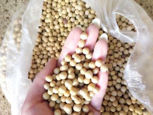黄豆挑出坏损的洗净丢入豆浆机里,小米抓一小把洗净也丢进豆浆机里,填水,豆浆机选豆浆栏。
