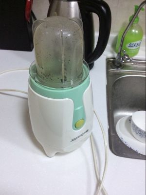 将黑芝麻和花生米分别放料理机里研磨碎,成粉末状。