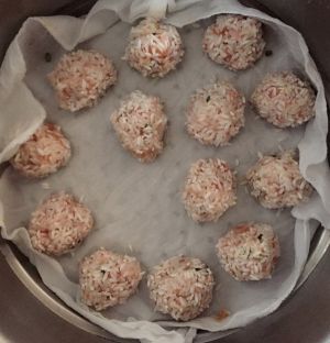 搓好的糯米丸子放入已经沸水的蒸锅上 蒸15-20分钟 我糯米放的多 所以蒸时间长一点 用了20分钟