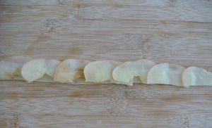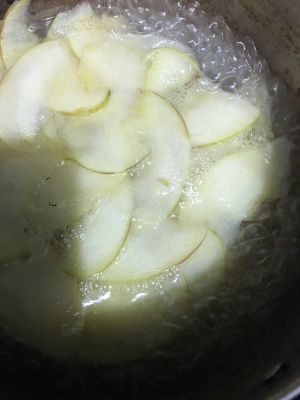 苹果切片,水开入锅煮1分钟,捞出控干待用