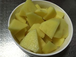 土豆,胡萝卜洗净,切块,备用。