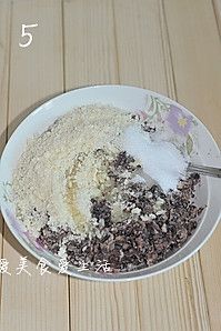 蒸红豆的间隙,把冷馒头去皮用手搓成馒头渣备用。