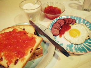 早餐的土司配上番茄酱,超完美,超新鲜