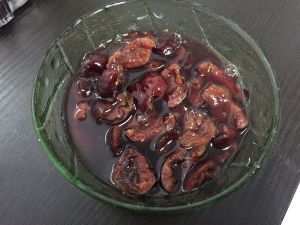 100g水加40g白砂糖煮开后倒入车厘子中,晾凉,放入冰箱。腌一夜。 宝宝夜吃 就没加朗姆酒。