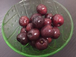 车厘子洗干净,挑出一些装饰蛋糕表面,其余洗净,去核 切开。