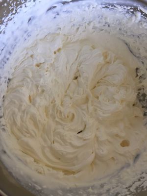 蛋白加入柠檬汁,分三次加入50g糖粉 打发