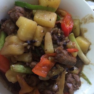 等土豆熟了。就把这些放进去。还有豆咝。不要停的翻炒,试一试味。看看要不要调一下。