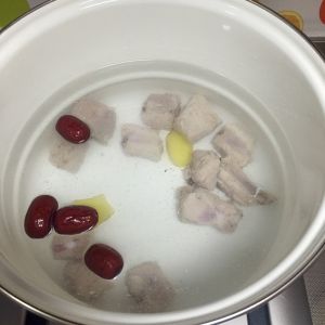 排骨焯水,捞出。汤锅放排骨,添凉水,姜片,枣,大火煮开,转小火炖。