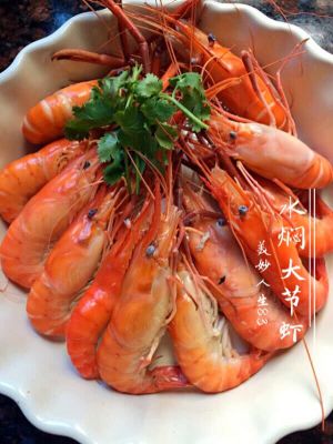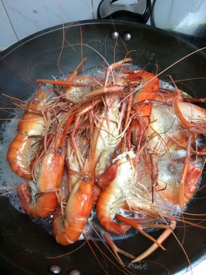 一碗水煮沸放入姜丝再倒入虾,盖上锅盖焖5分钟即可