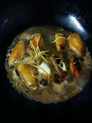 把:酱油 蚝油 烧酒 姜丝 砂糖,一起放进鸡翼中腌制30分钟-1小时