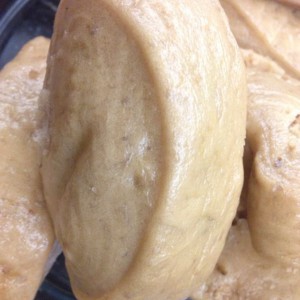 将红糖溶于清水中过滤一次,然后加入6g酵母搅拌溶解。 加入面粉,加入牛奶,揉成团。静置到发酵2倍大小。取出面团 ,排气。压成长方形。卷成一条