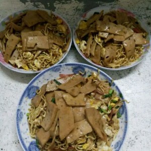 先把肉腌好和面泡软,一点要用冷水,也不要泡太软,有一定的弹性才好吃(如果是肉片就不用腌了,本来就有味道的),放点蒜锅里,倒入猪肉一直炒到熟,加点淀粉水最后收汁,再盛到碗里,或者跟面一起炒,也可以炒好面铺在上面