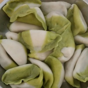 锅里开锅后放入饺子,盖锅盖煮,饺子每煮开一次,加一点冷水,盖锅盖继续煮。重复三次开锅,三次加水。三次加水后,盖上锅盖焖两分钟。美味就可以出锅了