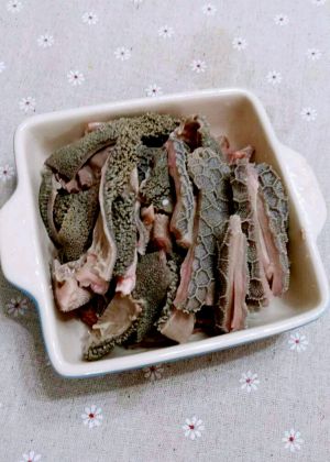 羊肚皱褶多,要用盐抓洗干净,去除粘液,焯水后切块炖汤,