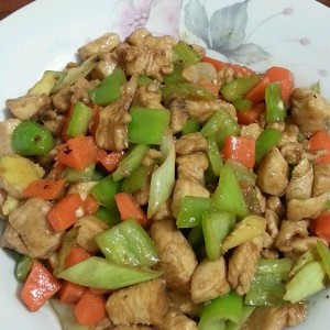 锅里放入底油,先把胡萝卜丁用小火滑炒至熟,捞出放在一边,接着等油热了把腌好的鸡丁倒入滑炒,熟了捞出放在一边,最后倒入葱姜爆香,放入青椒,把胡萝卜和炒好的鸡丁一并放入,加少许白糖,生抽,味精翻炒出锅。