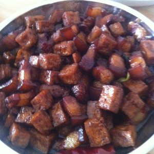 煮上半个小时,加入炸好的豆腐,在转蒸半个小时。在蒸前觉得盐味不够加点老抽就行