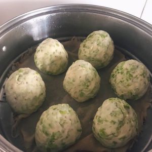 松软可口的榆钱馒头出炉了,吃馒头吃出了养生的感觉。