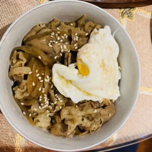 最后煮一个糖心蛋,下面配上一碗热腾腾的米饭,撒上一点芝麻……记得浇汁哦!