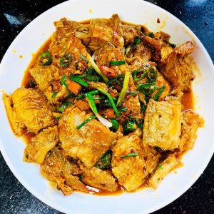 锅中放入比平时炒菜还要多点的油,烧热后下鱼块煎。