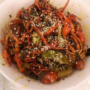 锅里倒入清油,4.5分热倒入小龙虾,炸至变色捞出控油