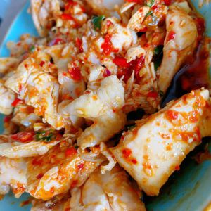 然后调配万能凉拌汁浇上切好块的鸡肉,拌均匀即可,就是一份超级好吃的口水鸡!