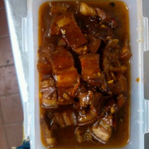 炒锅放油和白糖,小火慢慢熬至大泡变小泡,小泡快没的时候,放入五花肉快速翻炒,使每块肉都染上糖色,到入沫过肉的开水,放点料酒,整锅倒入高压锅里,上气后转小火煮十分钟关火,