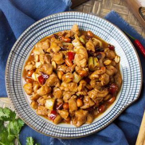 另外取炒锅倒2大勺辣椒油烧热,辣椒油是宫保菜好吃的秘诀,没有的话就用食用油吧。油热后放入花椒、干辣椒段爆香。