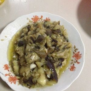 茄子熟了就把另一半蒜末放入锅里翻炒均匀,关火,焖一分钟,装盘。