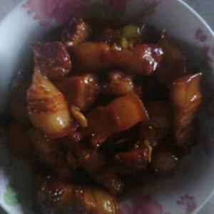 五花肉过油。炒锅爆香葱姜大料,下去肉调料酱油料酒等,加糖色,加水,小火慢炖。