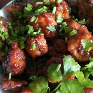重新起锅,倒入糖醋,大火猛炒。加热后倒入炸好的排骨。翻炒至粘稠状,装盘,淋上多余汁芡。。。然后个人喜好装饰。搞定