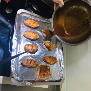 (30分钟.....)鸡翅取出,依次排开放到锡纸上,每个鸡翅调料拌匀,将鸡翅放入烤箱中。烤箱温度调整到180度 20分钟。根据自己烤箱微调。