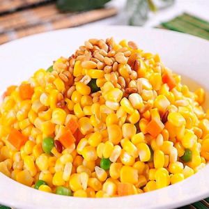 锅中加油将所以食材放入锅中 爆炒,加入煮玉米的水放入少许盐和糖,最后加入水淀粉出锅开吃。