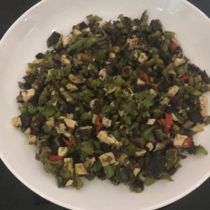 开火放一点点食用油,先炒辣椒,炒至辣味弥漫,再加入臭豆腐小火炒,最后加入鸭蛋稍微炒一会儿即可,出锅,香喷喷味交融的滋味臭豆腐就出炉啦~