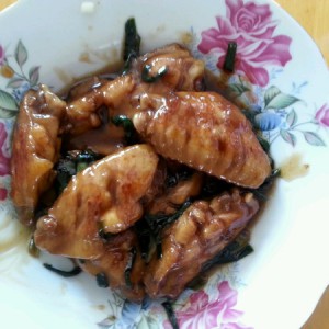 我只拍了成品图,步骤就用文字说明啦!先把鸡翅洗干净,用刀在表面化几刀,加少许料酒和盐巴腌制~