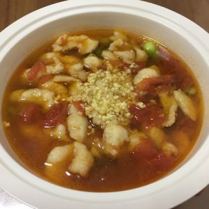 青菜洗净掰散,番茄洗净去皮切片,葱姜切片,蒜2瓣切片3瓣切末,龙利鱼切片加适量淀粉、盐腌15分钟