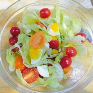 和上次差不多 煮鸡蛋和土豆 切蛋 这次煮时间短变溏心蛋了 因为太素了 加点蛋补充蛋白质也吃得饱