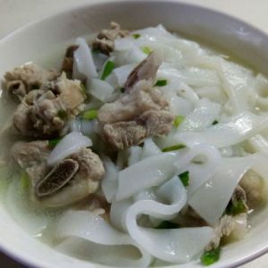 锅重新洗净,放入适量水(此时水可多放,因河粉易吸水),倒入排骨,大火煮开后,中火煮三十至五十分钟,然后倒入少量醋煮五分钟,去腥。