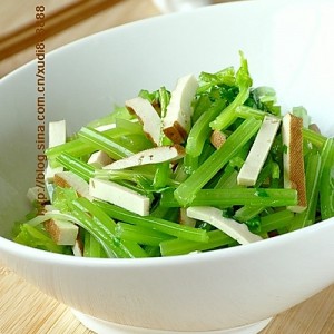 倒入芹菜,翻炒几下之后,调入盐和糖,炒匀后大火20秒钟即可。