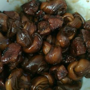 放2勺料酒,2勺生抽,1勺老抽,1袋炖肉香料,3块冰糖,少许盐,2勺啤酒,3碗水。(老抽要少放,放多了颜色会发黑。冰糖和盐根据个人口味,我喜欢甜甜的所以放了3块。放啤酒是为了能让肉更快煮酥入味。)