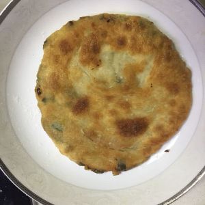 将醒好的面揪下来一点揉成圆形并擀成长方形。